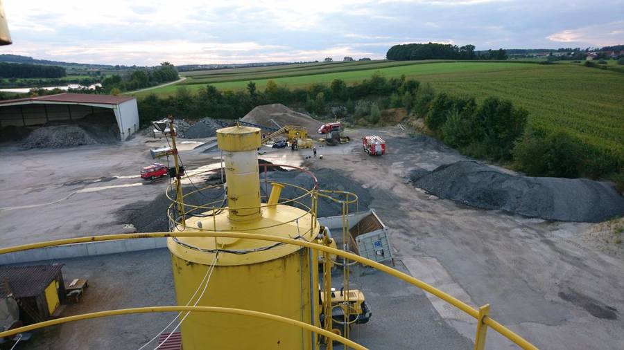 Auf der Mischanlage waren 3 Personen eingeklemmt und verletzt, diese wurden mittels Atemschutz der FFW Ehingen gerettet.