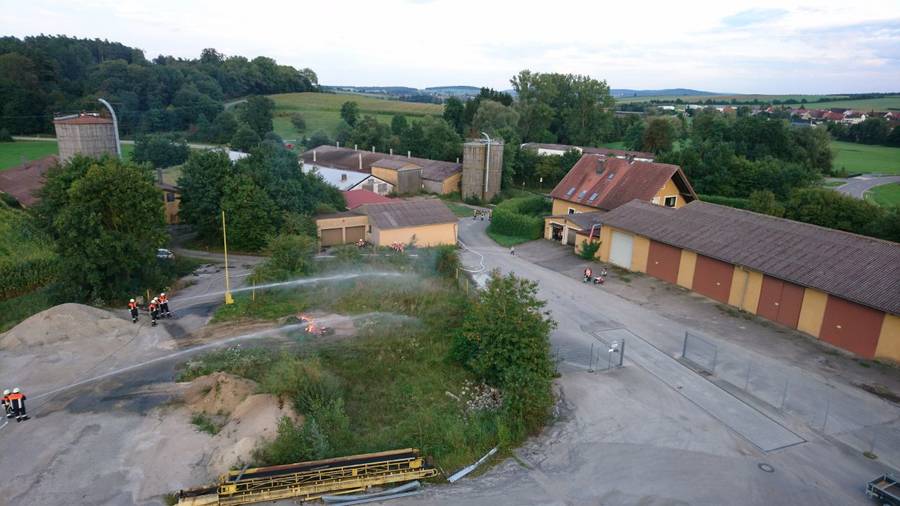 Die weiteren Feuerwehren aus Beyerberg und Dambach bauten eine Löschwasserversorgung auf und bekämpften den Brand.