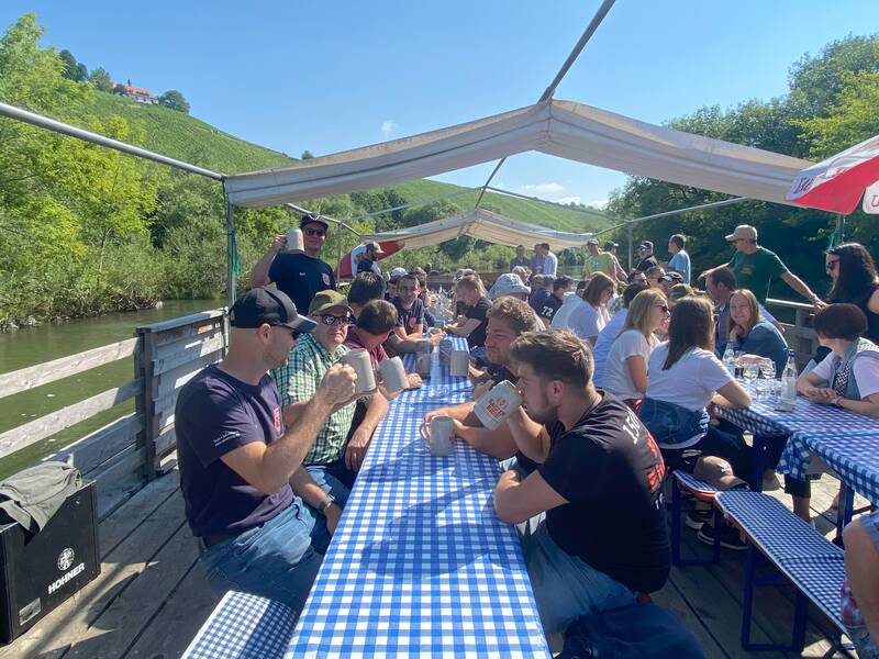 Die FFW Ehingen unternahm am Samstag, den 22.06.2024 eine Flossfahrt auf der alten Mainschleife und anschließend gab es eine Führung im Weingut des Julius Spitalstifts.