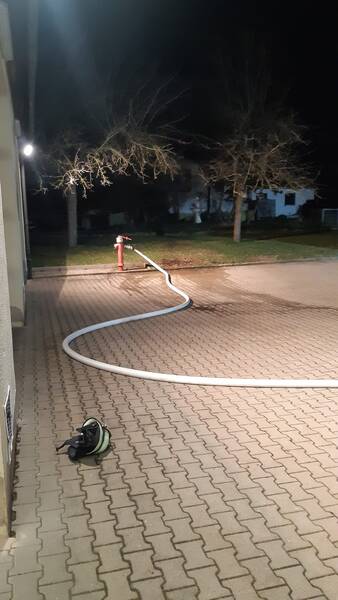 Wasserentnahme war ein Oberflurhydrant an dem ein Rückflussverhinderer eingebaut wurde, von dort wurde Mittels eines B-Schlauches das Wasser zur Tragkraftspritze geführt.