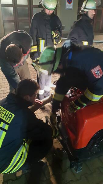 Geübt wurde mit dem HLF 20 und der Tragkraftspritze des TSF.